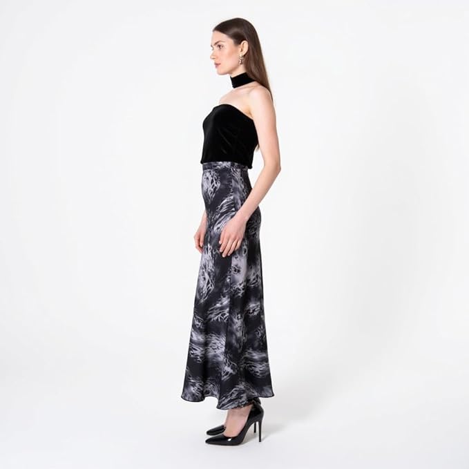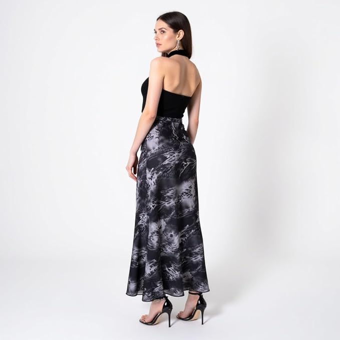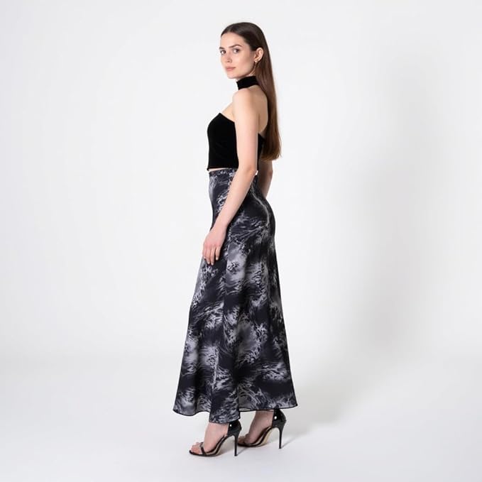 Elevate your wardrobe with the DRESSCHOLIC Women's Midi Skirt, designed for effortless style and all-day comfort. Crafted from premium viscose fabric, this skirt features a stunning black and gray watermark print that adds a touch of modern elegance to any outfit.